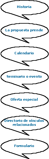 Historia | La propuesta prende | Calendario | Seminario o evento | Oferta especial | Directorio de vínculos relacionados | Formulario